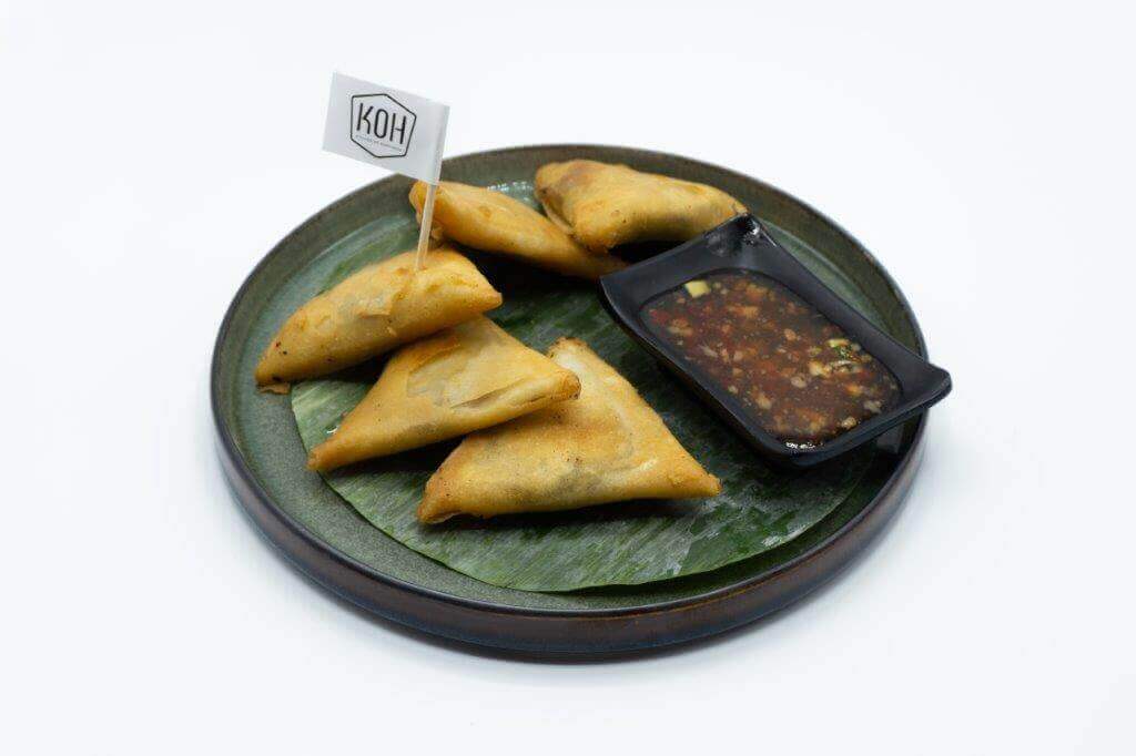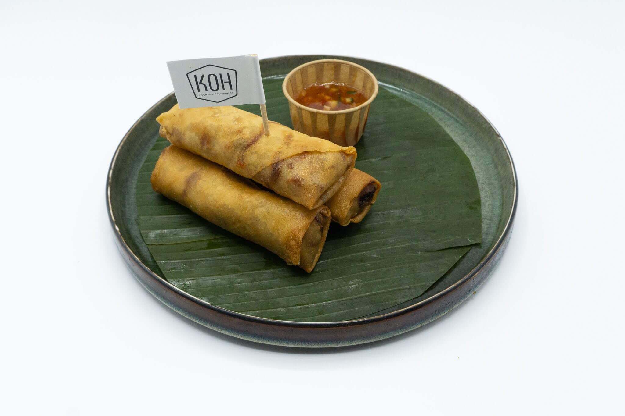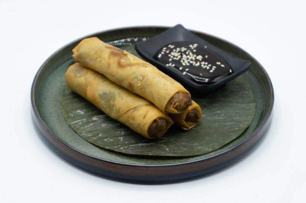 'Samosa' Style Duck and Shitake Springrolls with Black Bean Sauce.