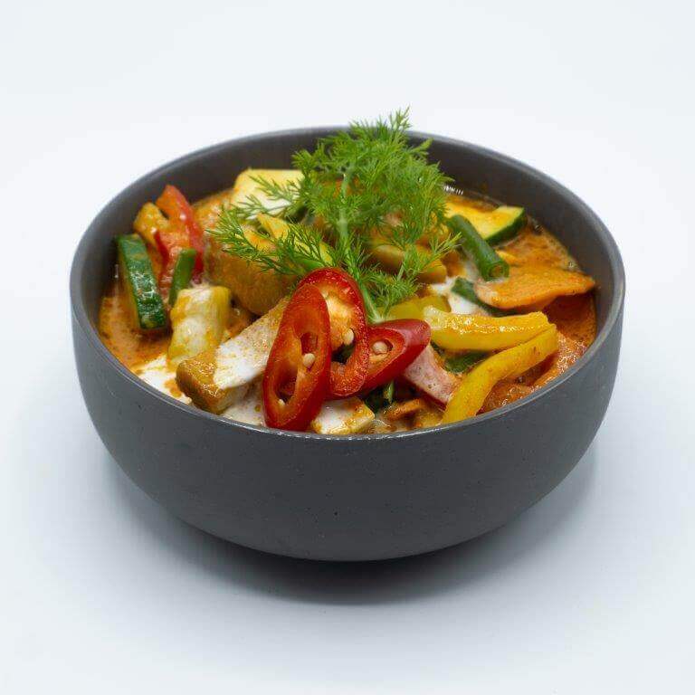 Creamy Red Curry | Vegetables | Fried Tofu | Dill |1 Chili